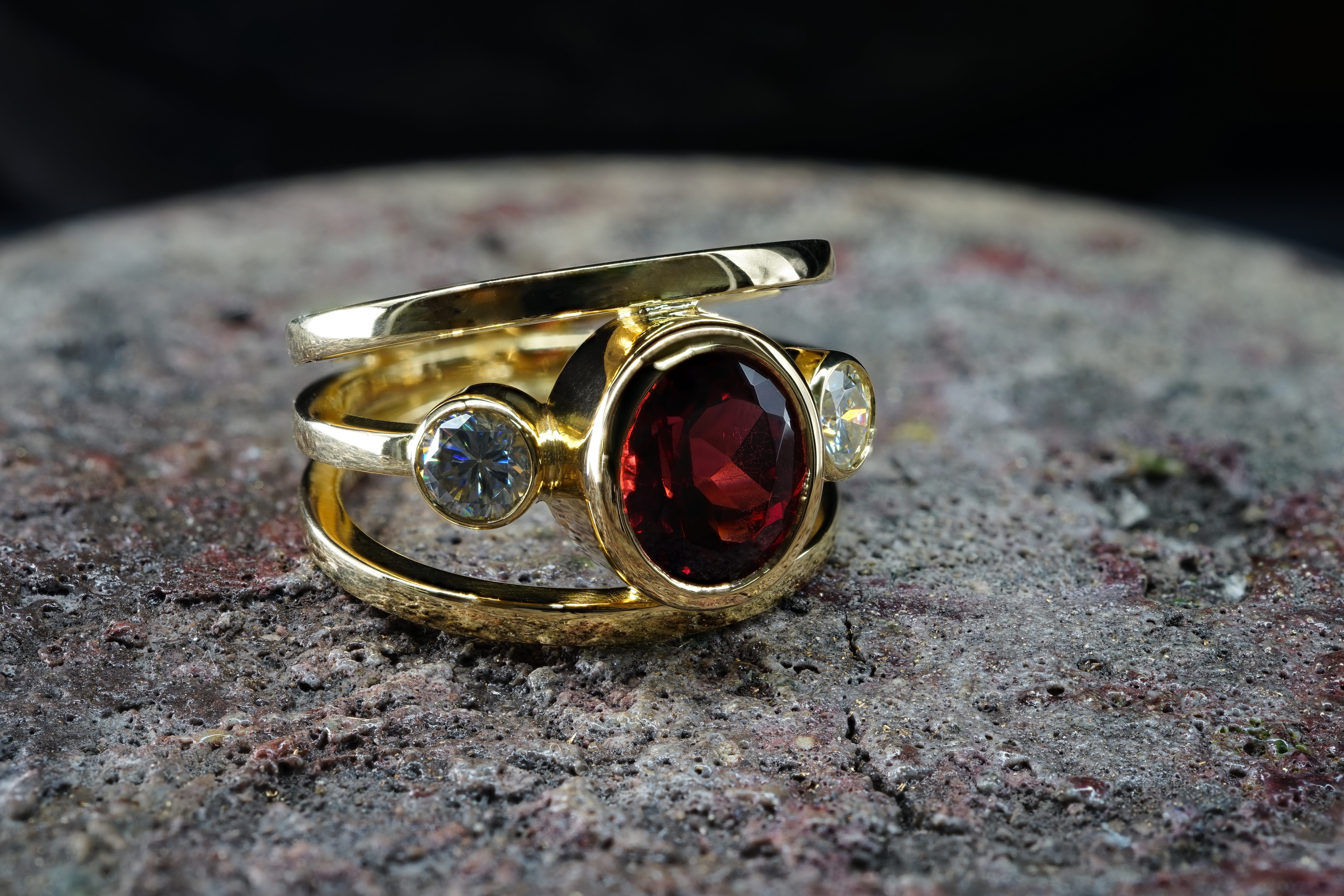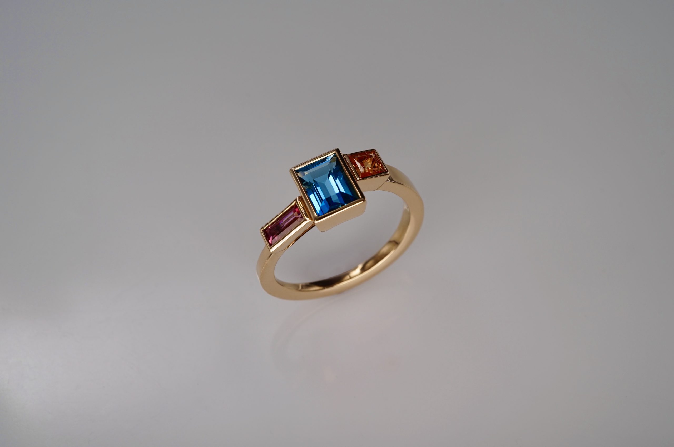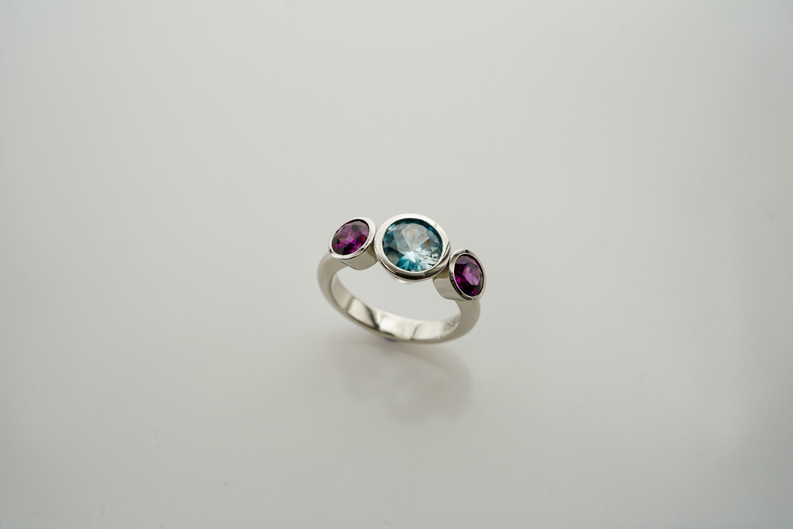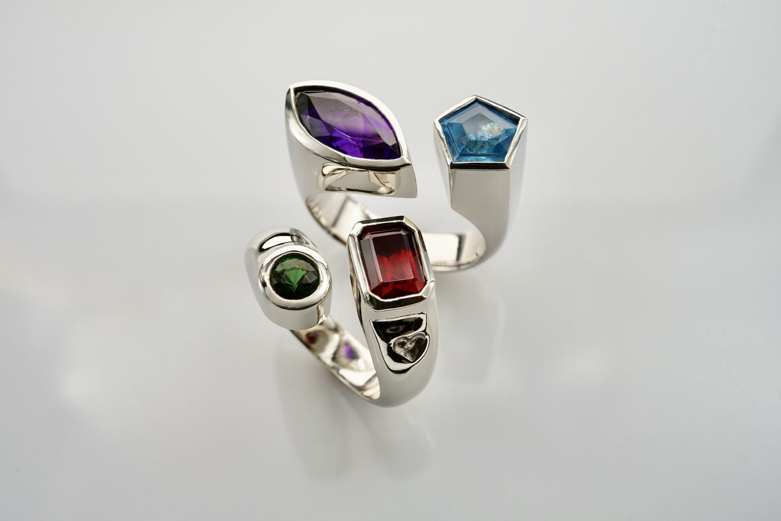 Ringe in Granat und Turmalin sowie Topas und Amethyst in 950er Platin (Kundenanfertigung)
