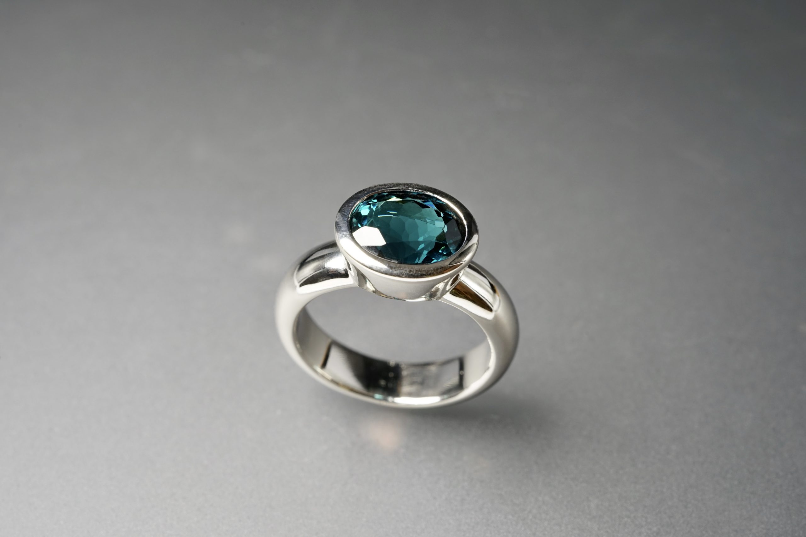 Ring in 950er Platin mit Turmalin Atlanticblue (Kundenanfertigung)