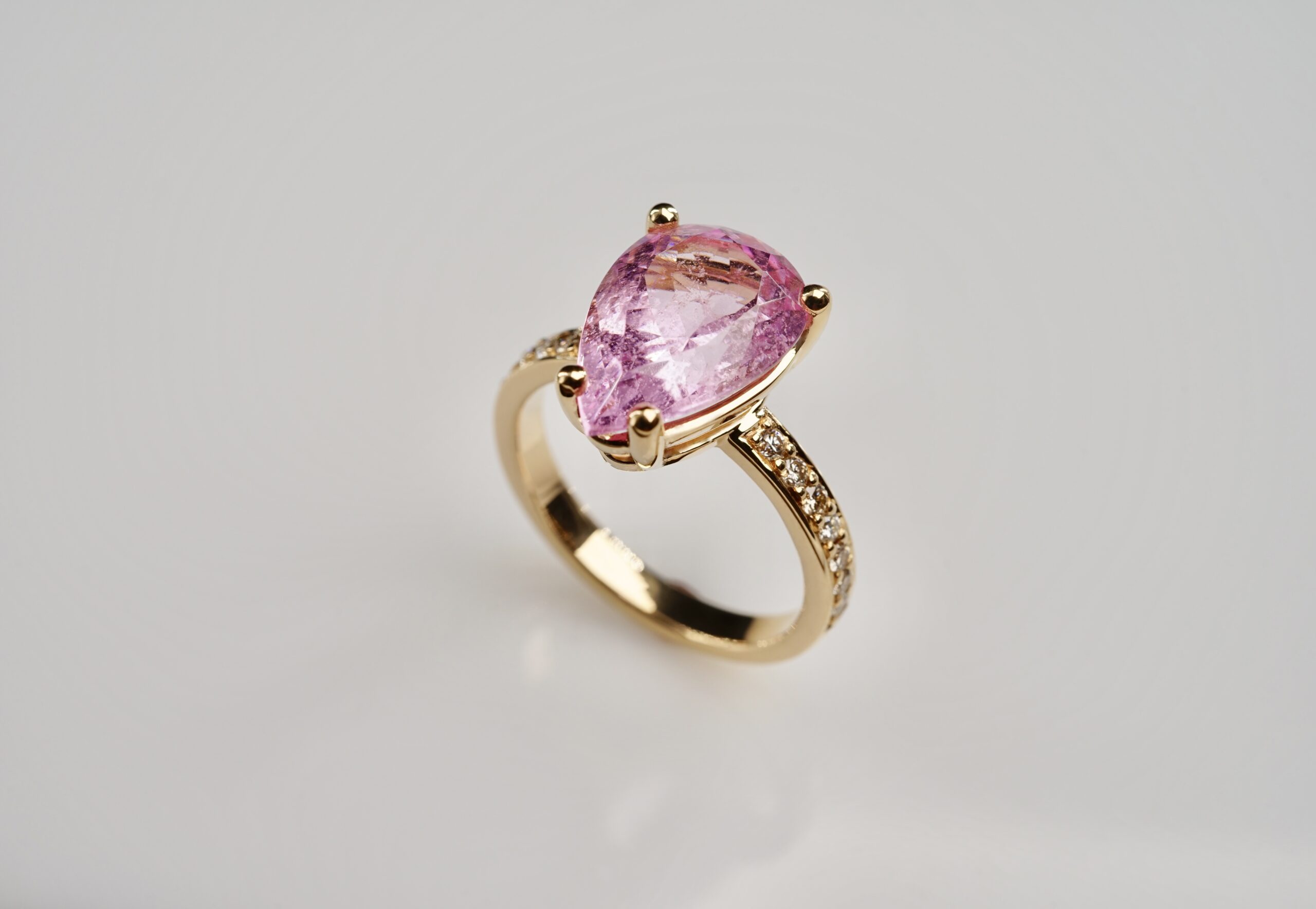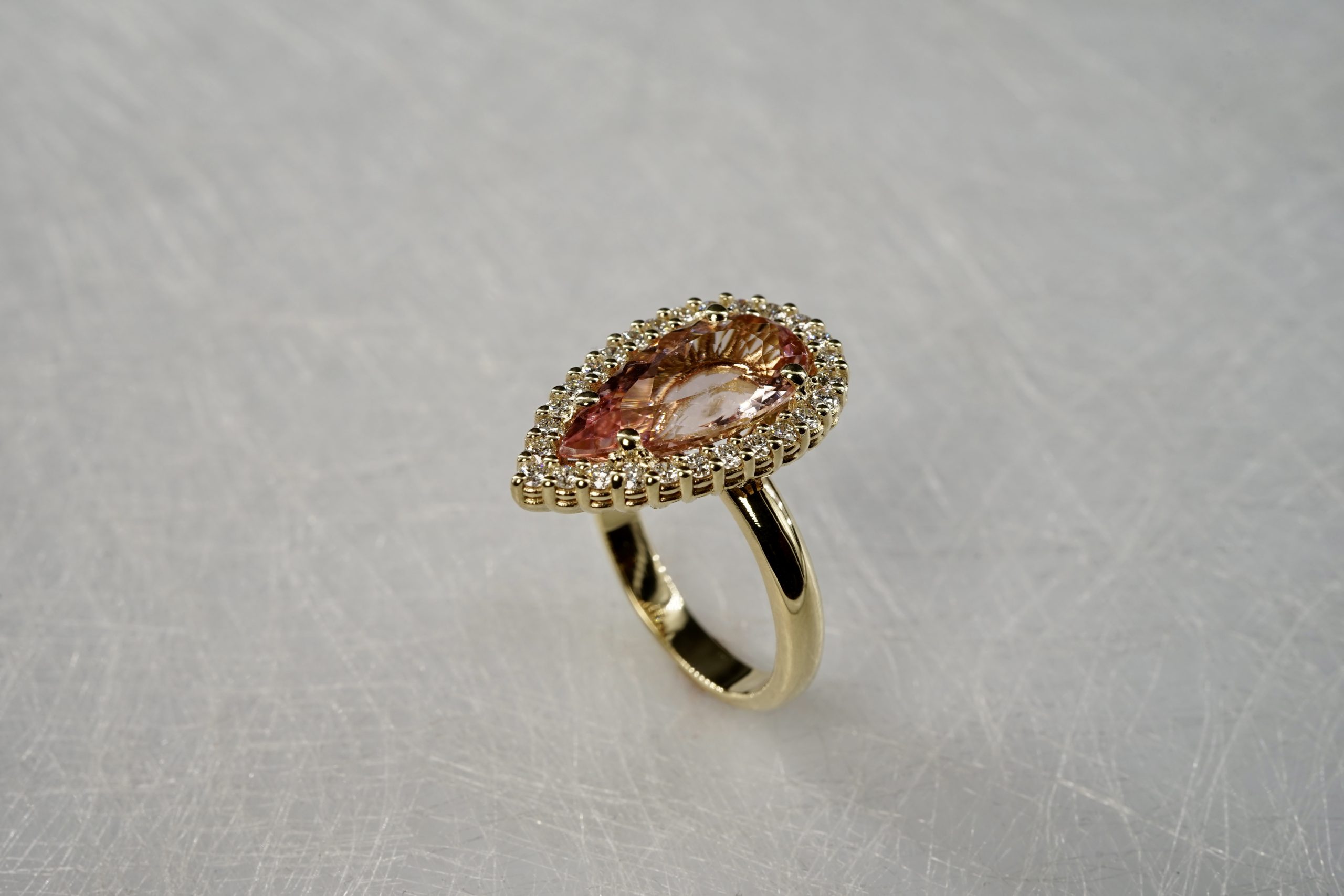 Ring mit pinkfarbenen Morganit (ca. 5 ct.) und 14 Brillanten in 750er Rosé-Gold (Kundenauftrag)