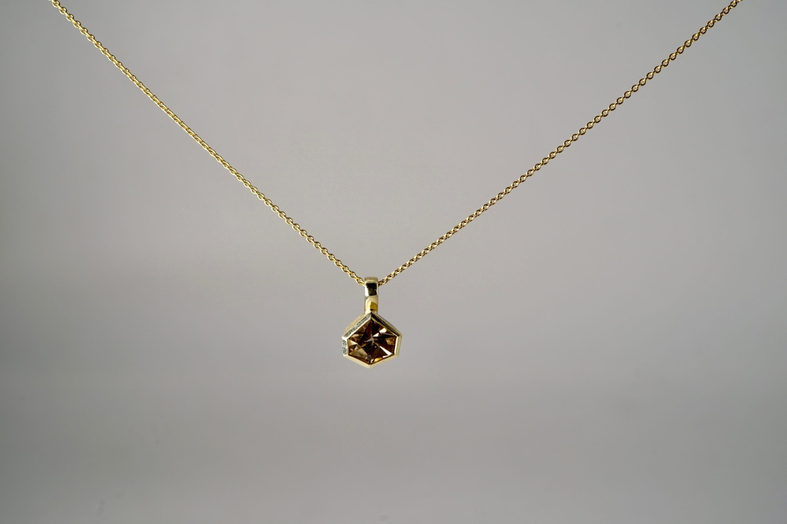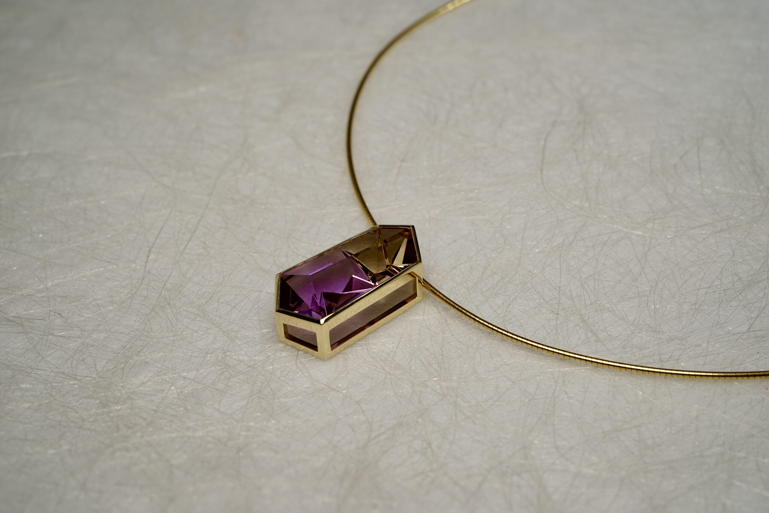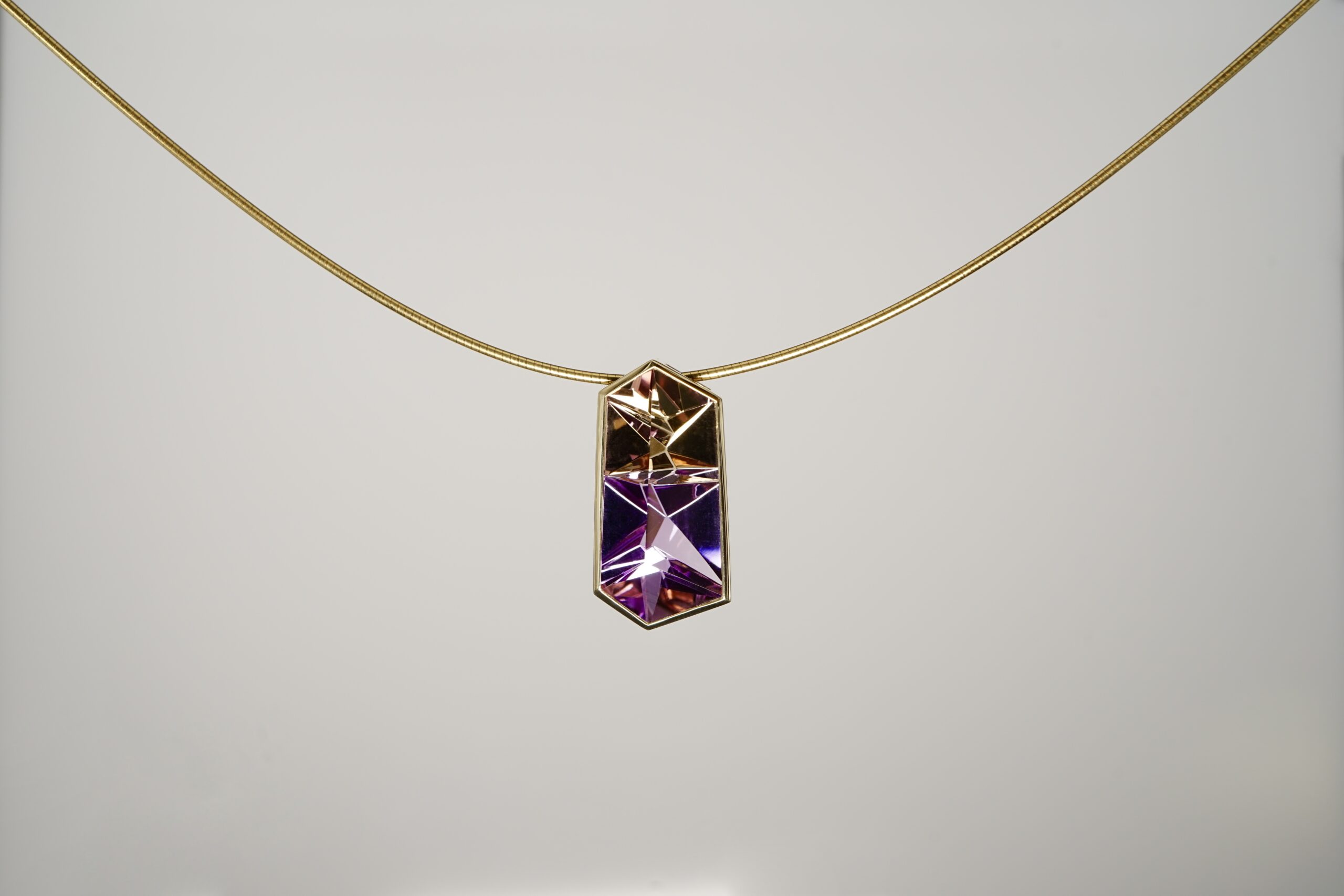 Anhänger mit Ametrin in Tom Munsteiner-Cut in 585er Gelb-Gold; 1970.- € und Omegareif Ø 1.2mm mit 42 cm Länge in 585er Gelb-Gold; 595.- € (verkauft)