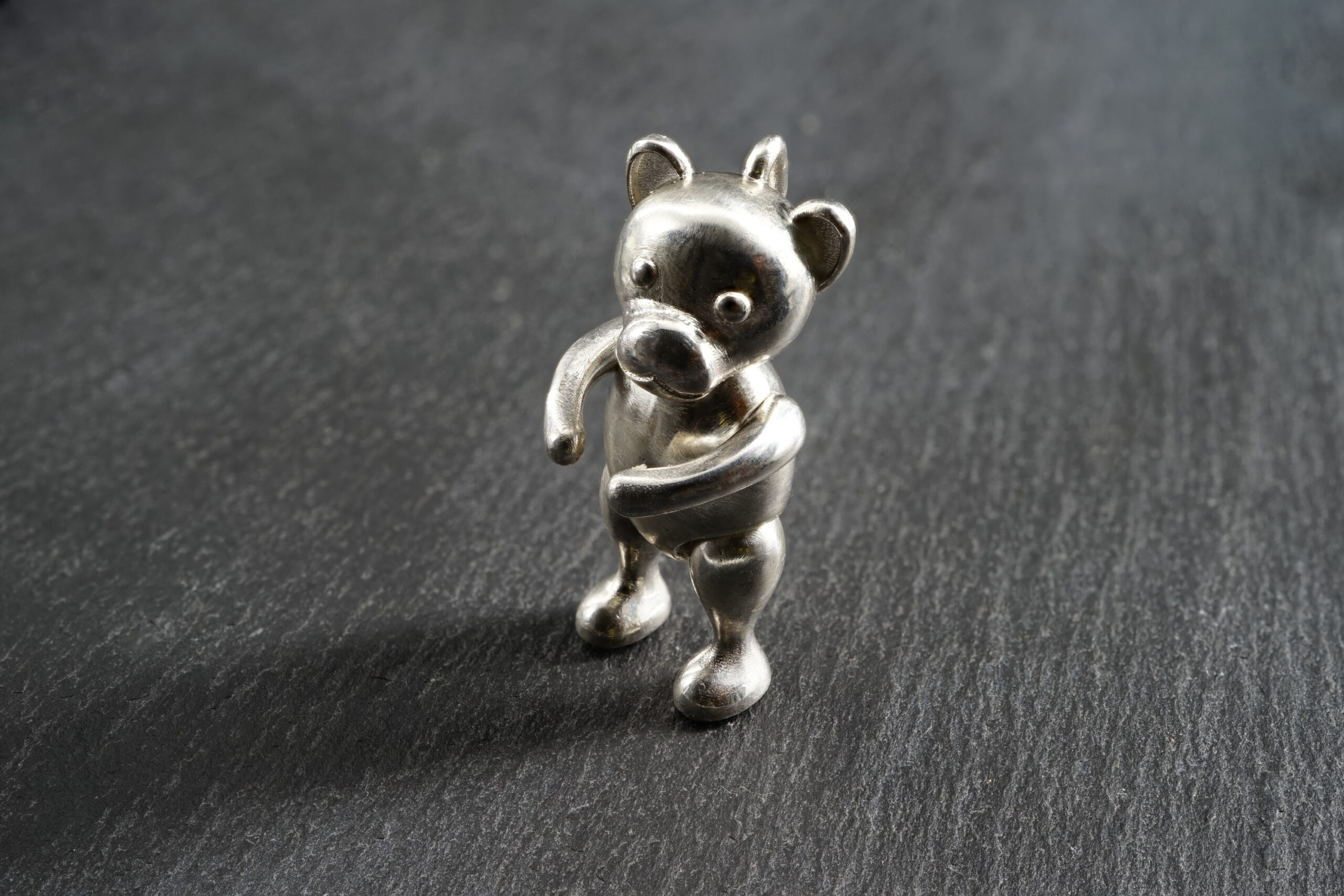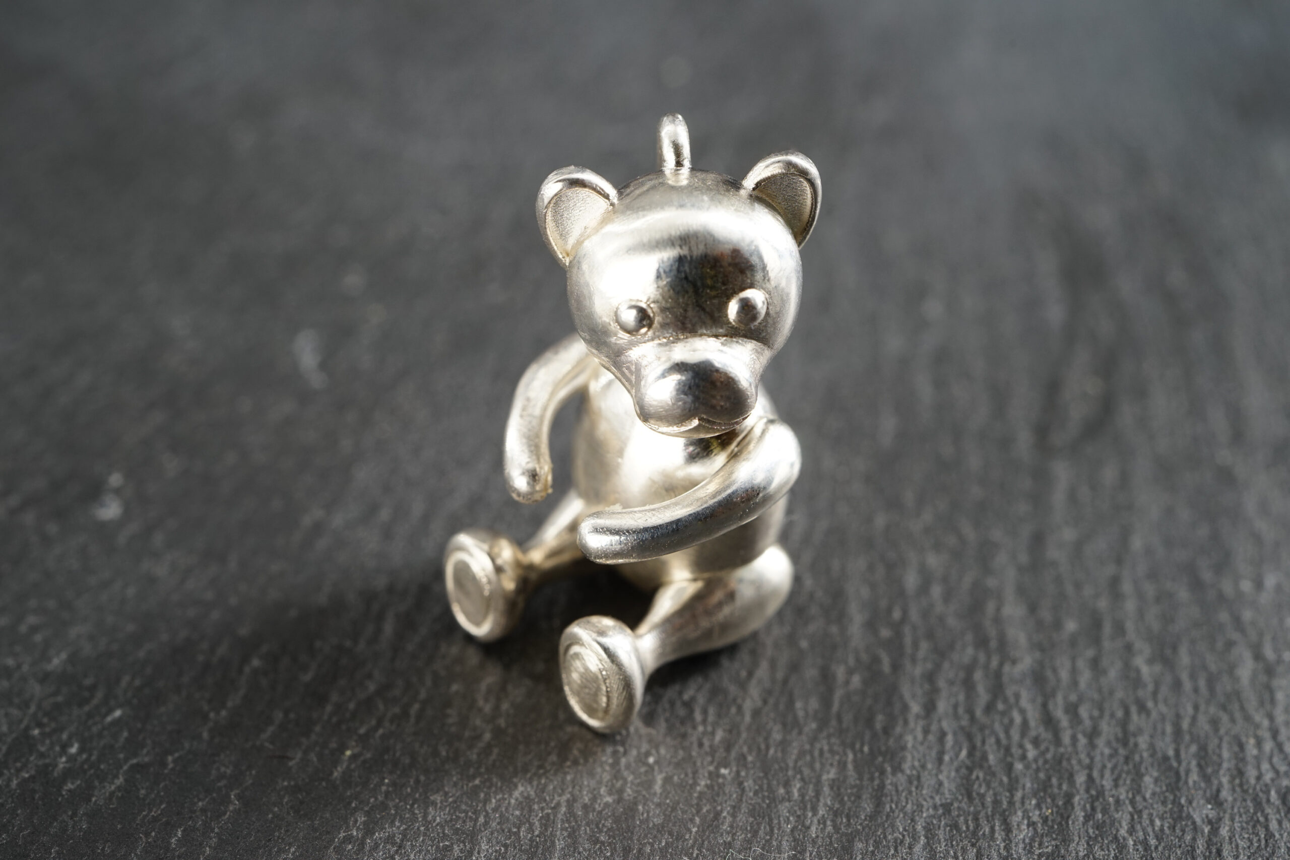 Schlüsselanhänger „Bärchen“ mit beweglichen Kopf, Armen und Beinen inkl. Schlüsselkette mit Wechselschließe in 925er Silber; 350.-€