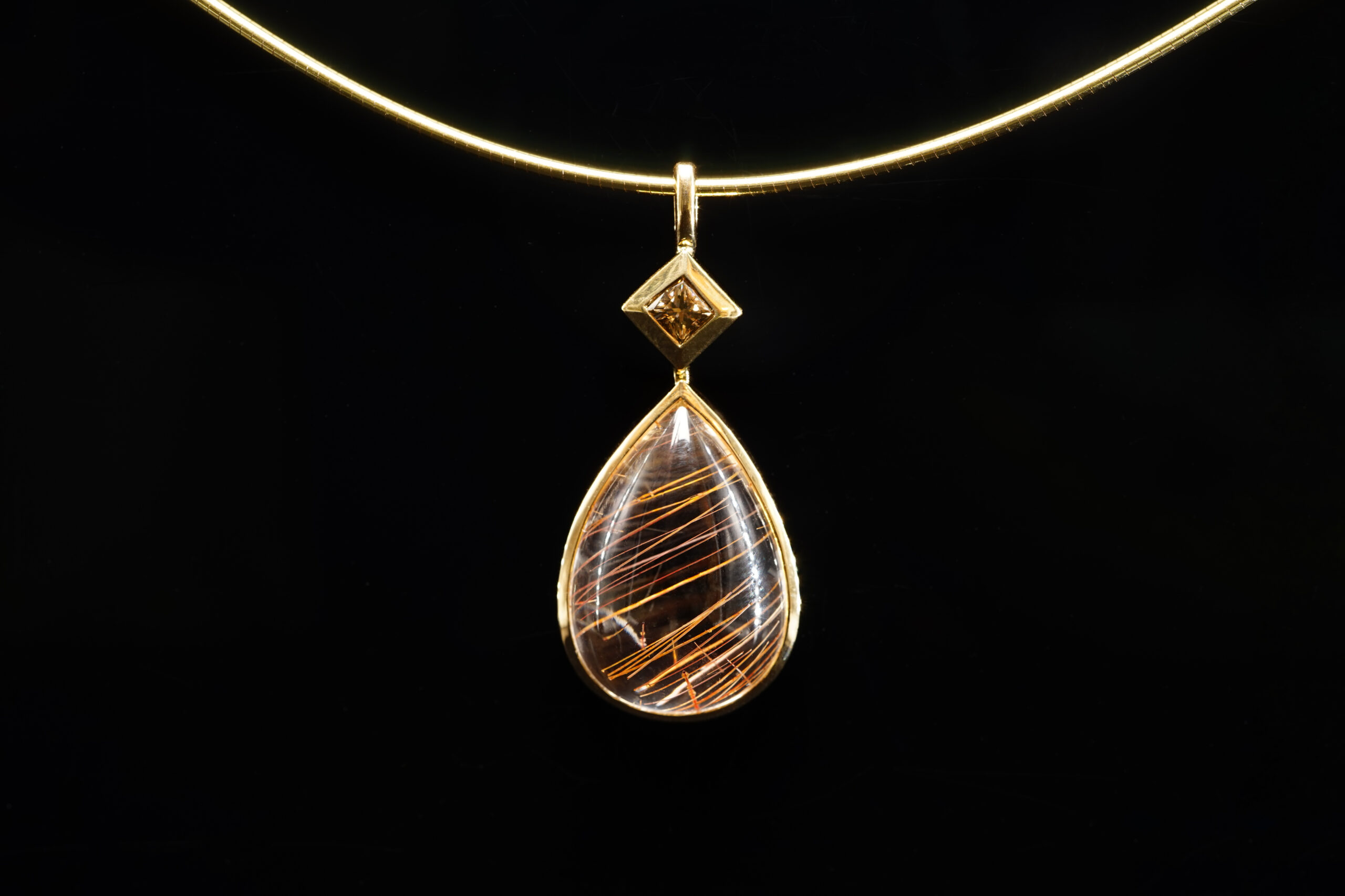 Anhänger in 750er Gelb-Gold mit Prinzess-Diamant 0.36 ct. und Rutilquarz 24×16.5 mm; 1669.-€