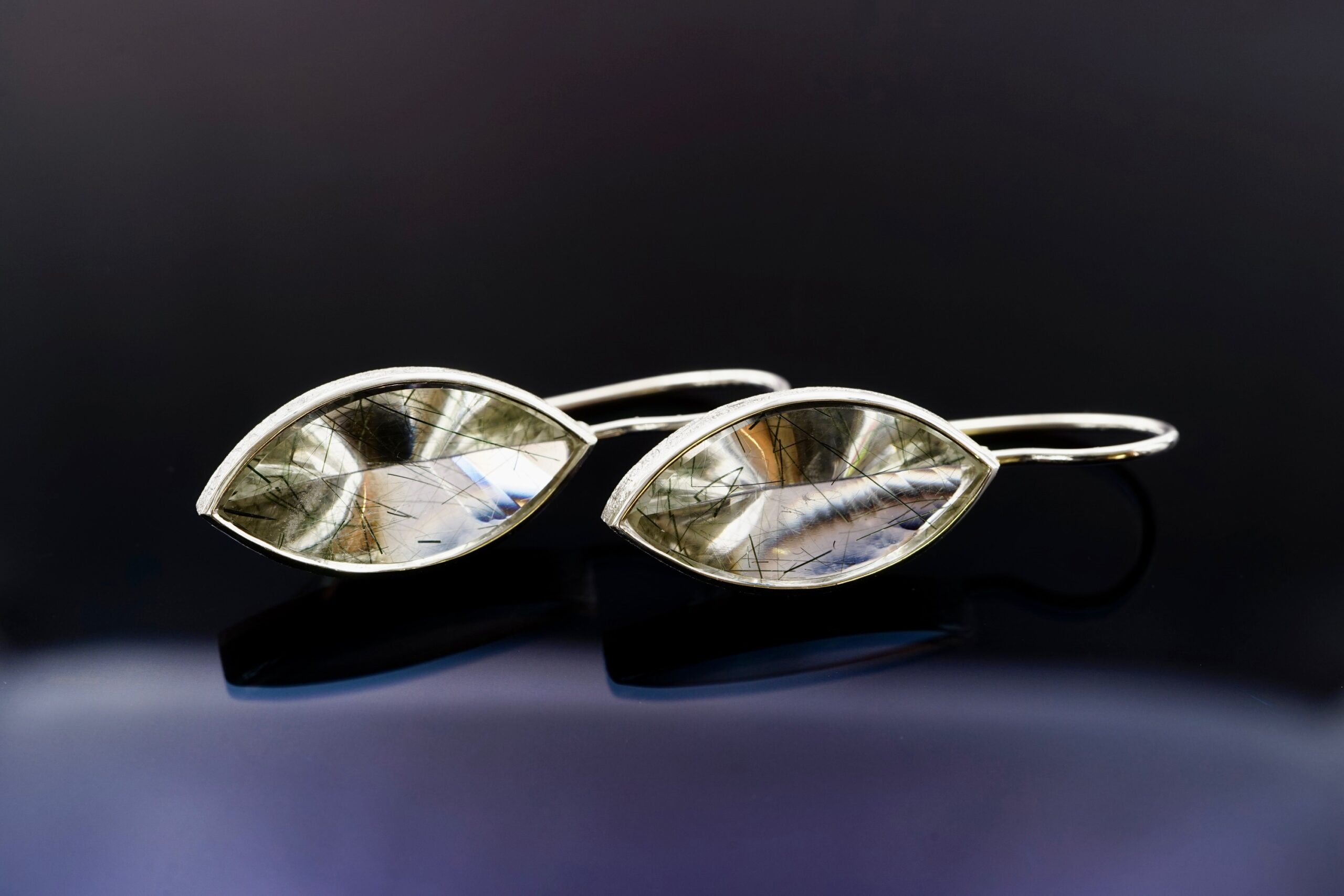 Ohrhänger mit Rutil-Quarz Navettes in 925er Silber; 420,- € (Kundenauftrag)