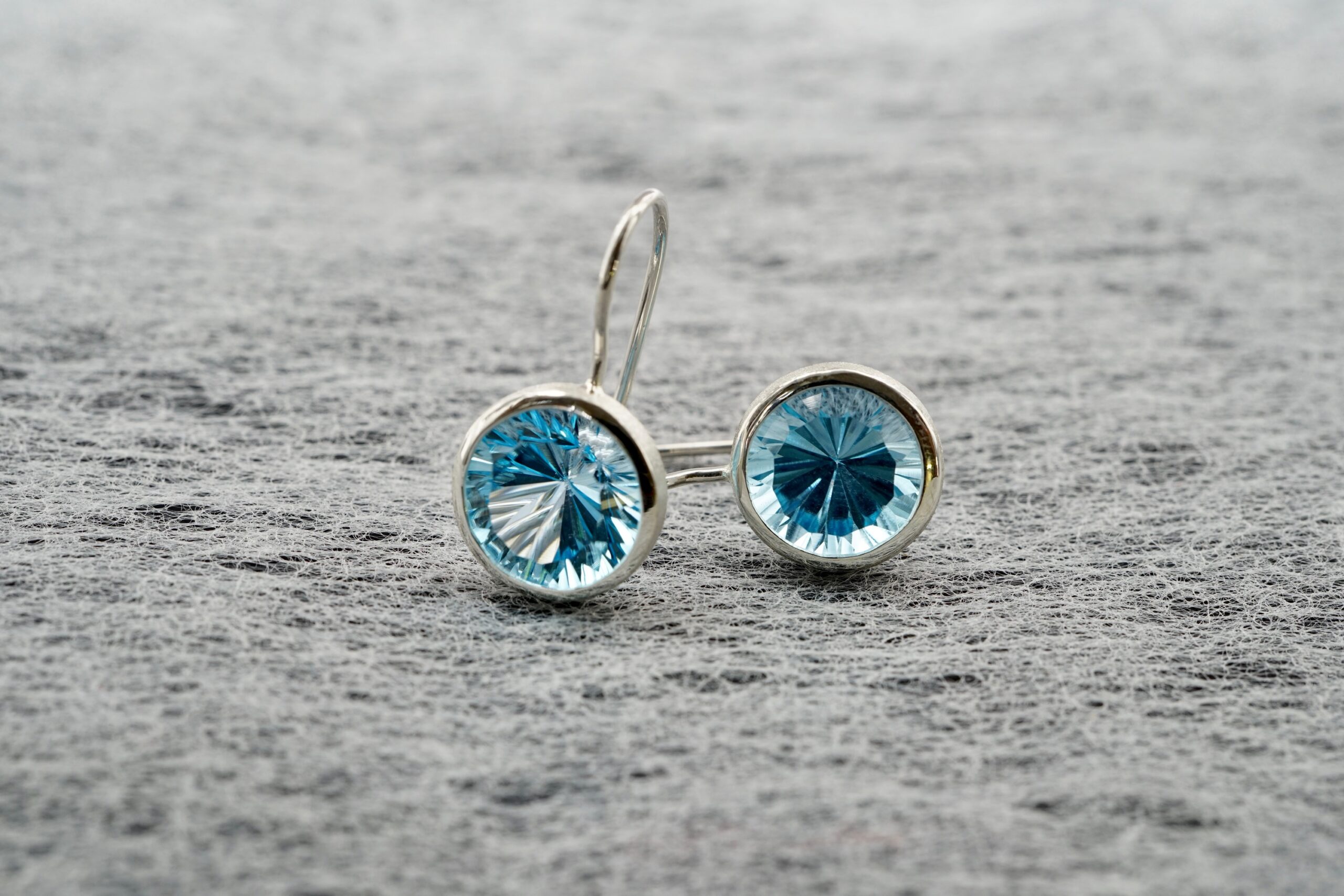 Ohrhänger mit Topas im Laser-Cut Ø11 mm in 925er Silber; 370,- € (verkauft)