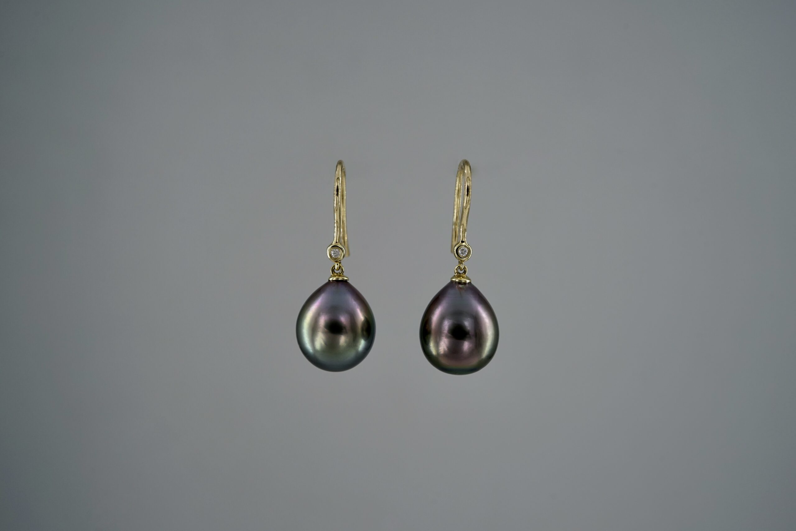 Ohrringe mit Tahitiperltropfen mit Brillanten 0,02 ct. twsi in 585er Gelb-Gold; 795.- €