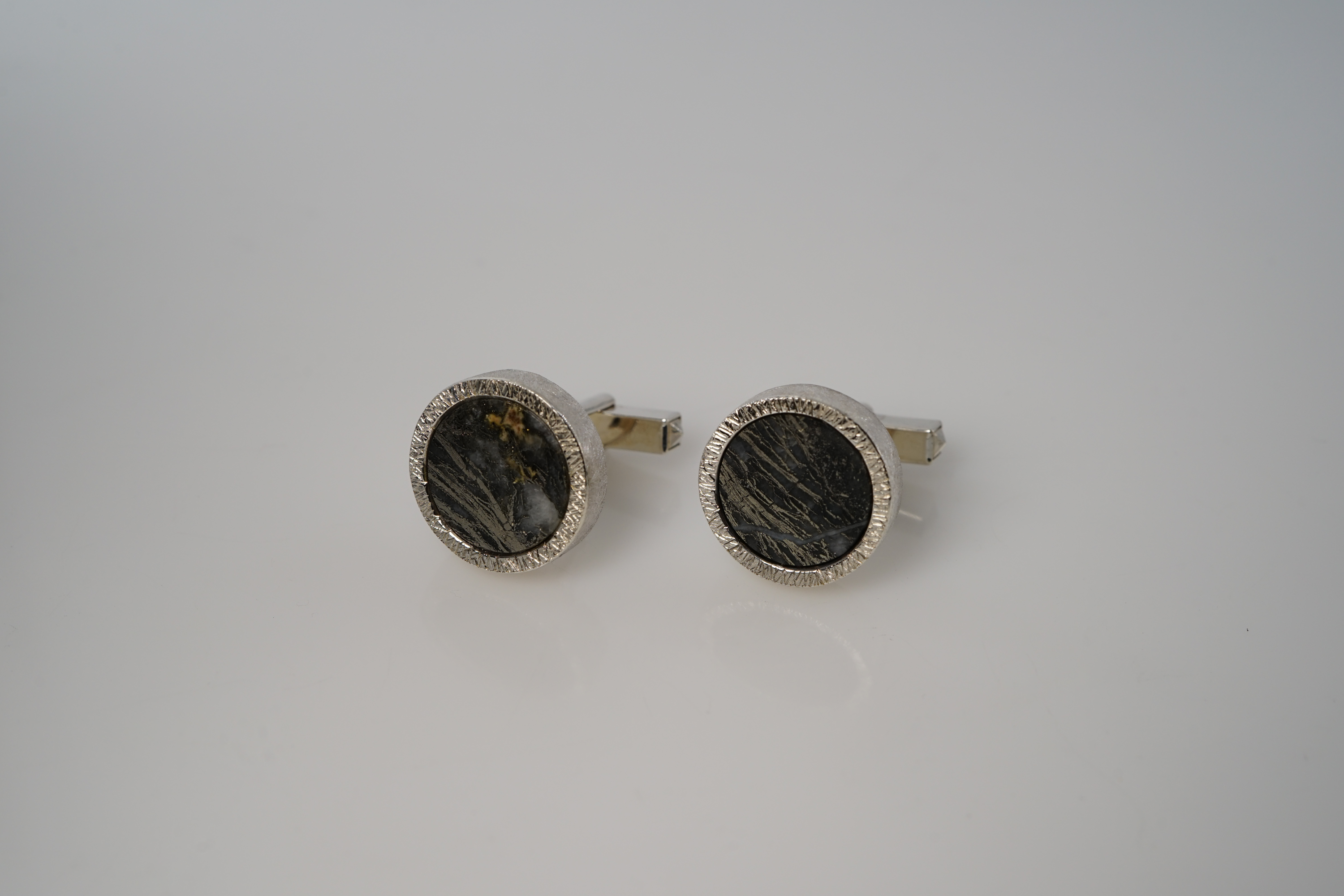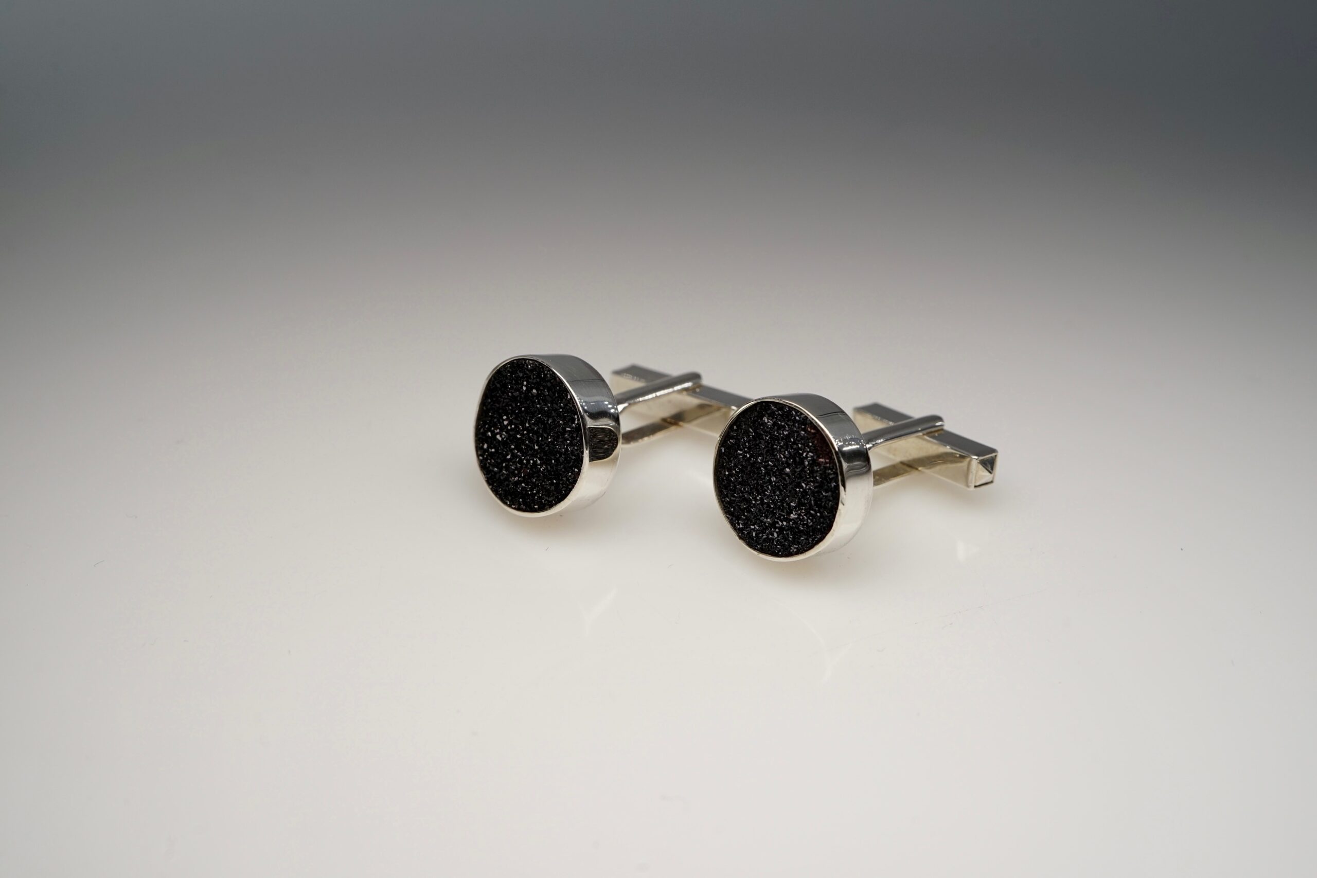 Manschettenknöpfe mit Onyx-Drusen schwarz in 925er Silber; 365.- €
