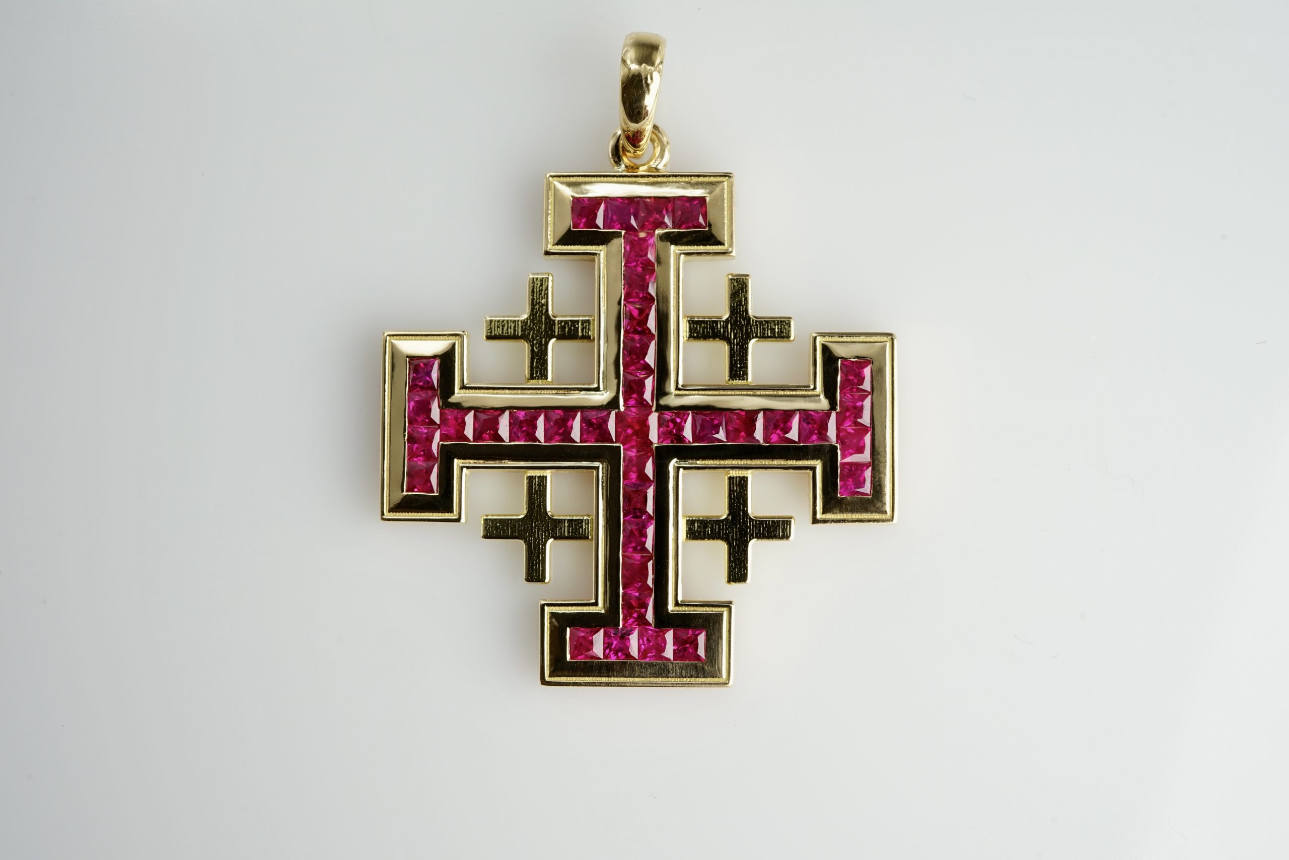 Jerusalem-Kreuz in 750er Gelb-Gold und 37 Rubinen (Kundenanfertigung)
